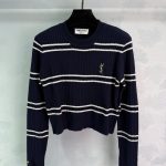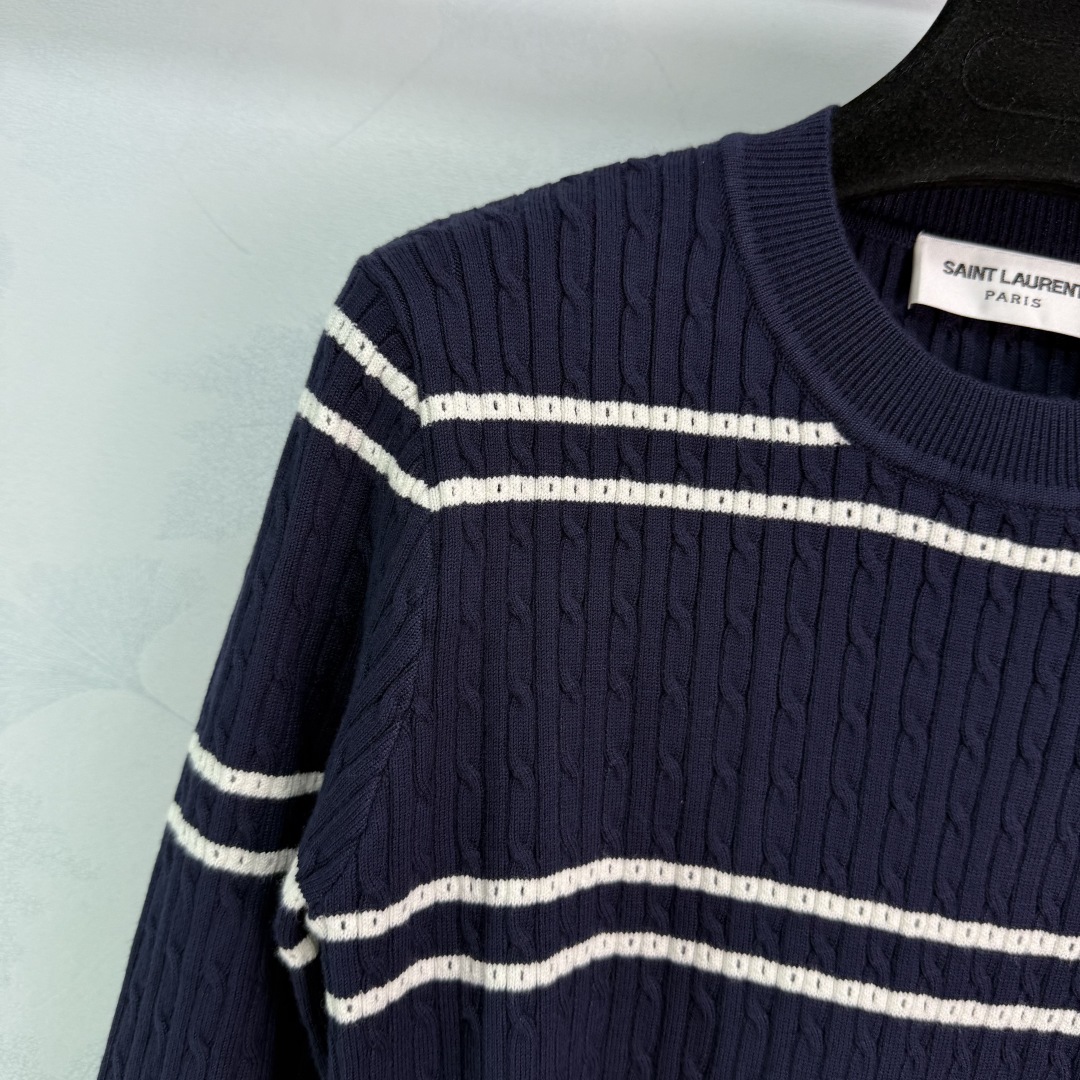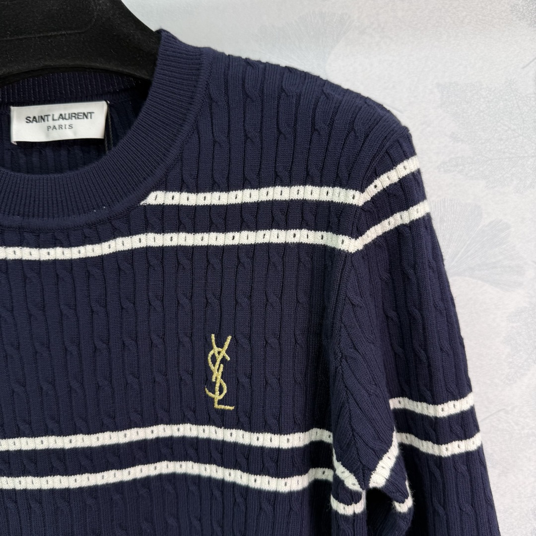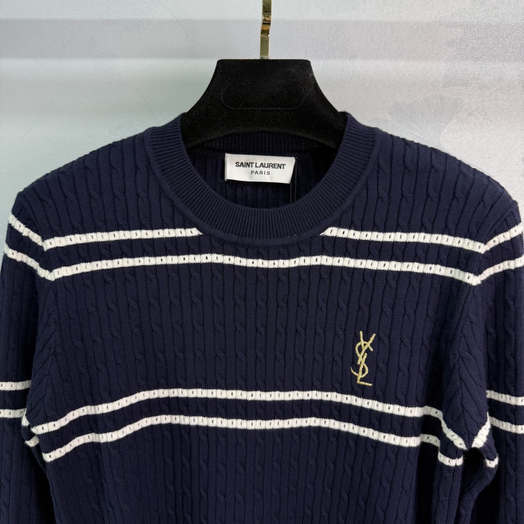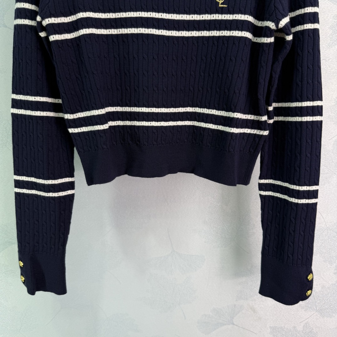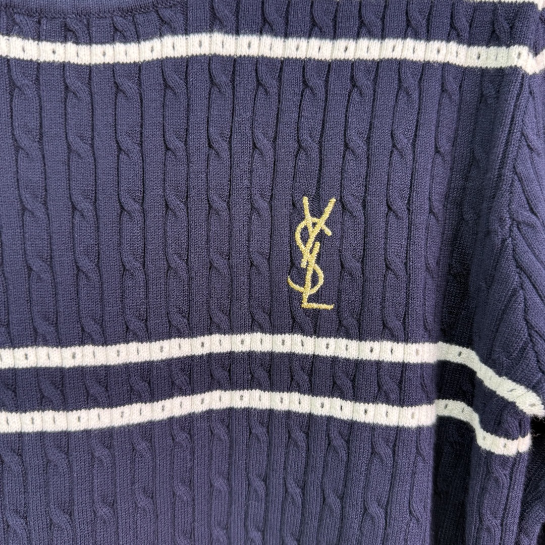 YSL* contrasting embroidered lettering striped long-sleeve top!